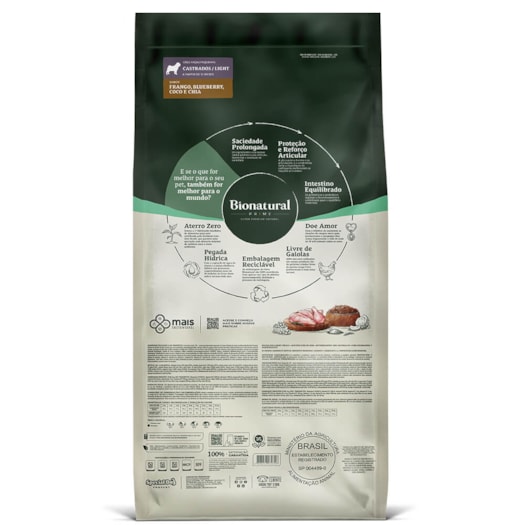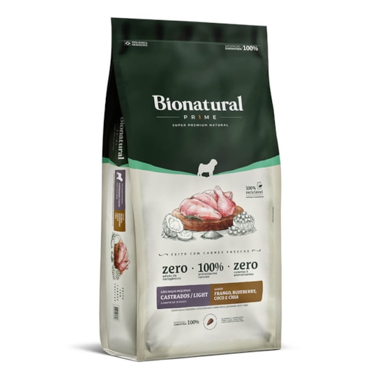 Ração Bionatural Prime Cães Adultos Castrados Raças Pequenas Light Frango 10,1kg